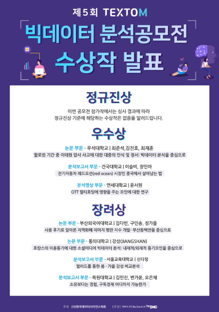 • 이번 TEXTOM 제5회 빅데이터 분석공모전에 관심을 가지고